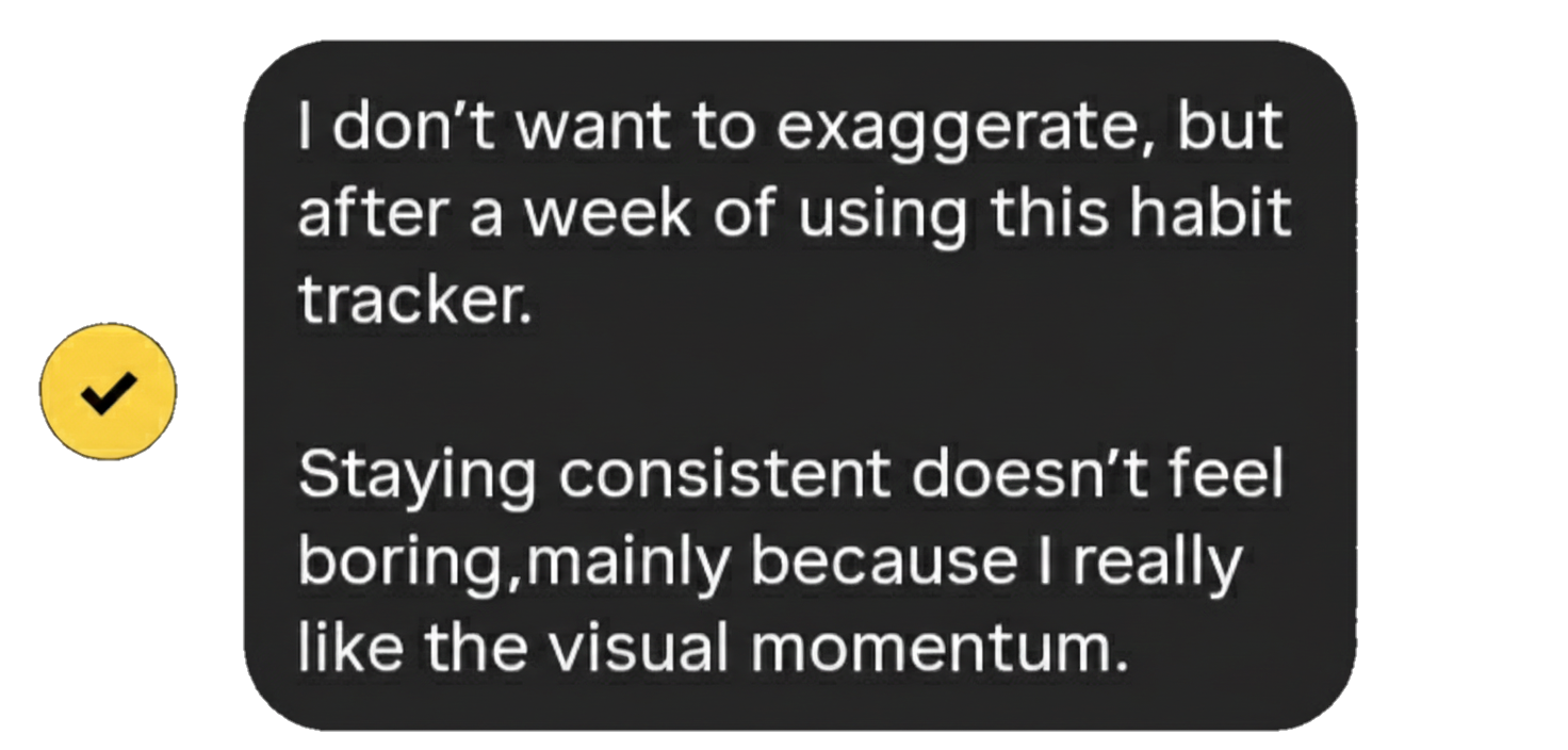 Vireon is built on a different mindset. It is an active system that works for you. The Progress Ring, Completion Bar, and Consistency Chart update automatically based on your daily input. This removes the tedious manual work that made you quit previous trackers.