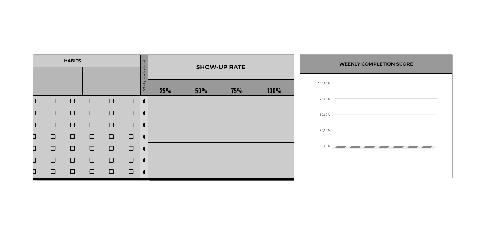 You're right. There are plenty of spreadsheets out there. Most of them are just passive, empty lists—they sit there waiting for you to fill them in, only to judge you when they're blank.Self-discipline builders